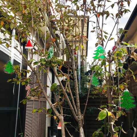 庭の木をクリスマスツリーに 真昼の庭