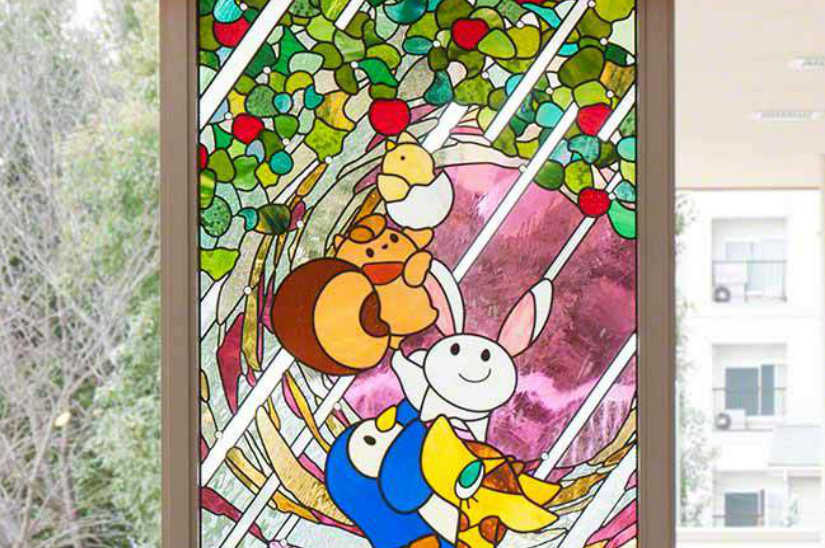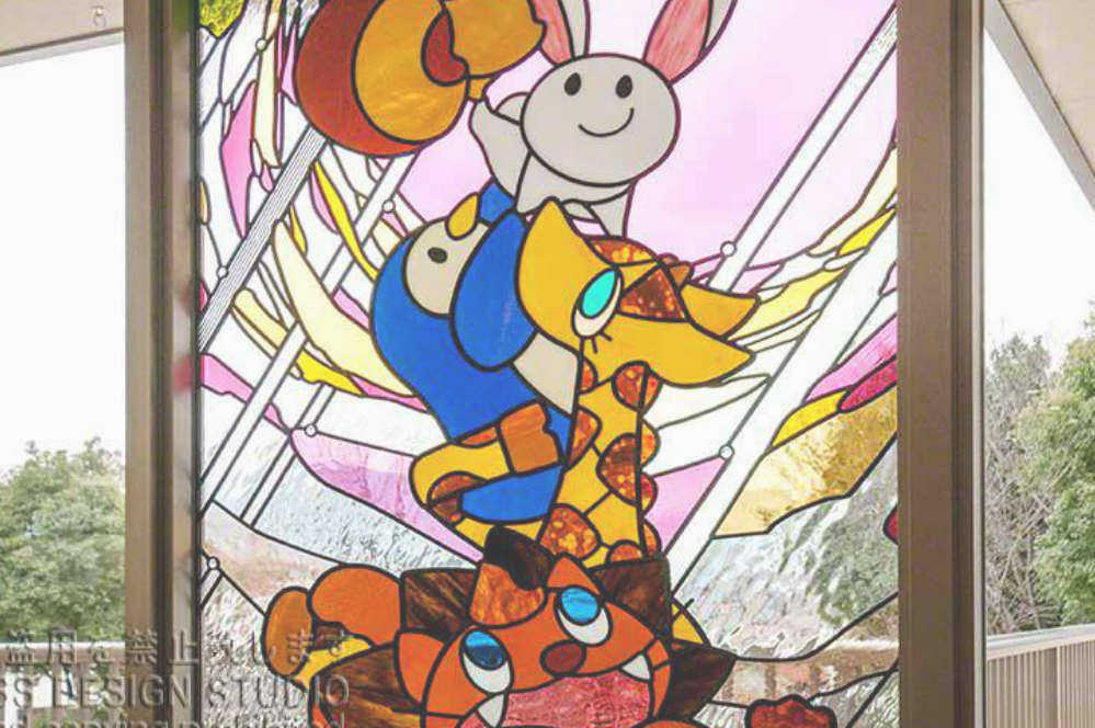 大阪府富田林市保育園階段踊り場 かわいいイメージのステンドグラス